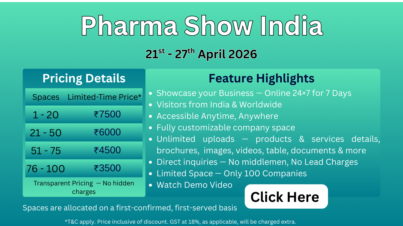 Pharma Show India - Live (IST) from 21-04-2026 00:01 To 27-04-2026 23:59